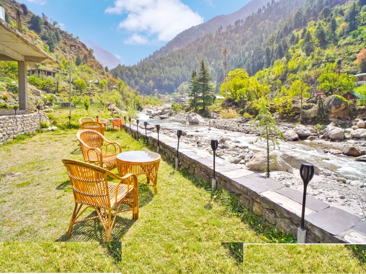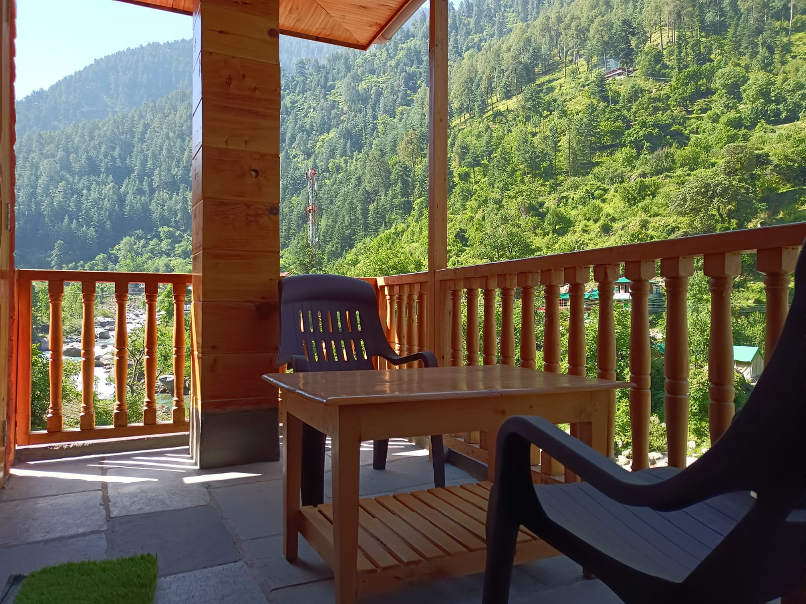 Super Deluxe Room with amazing Tirthan River View, with Balcony and access to Garden, Dining Area, Fire Area. where comfort meets nature. Our Super deluxe room is clean, spacious, and thoughtfully designed to make you feel at home, complete with soft bedding and a warm, inviting atmosphere. Enjoy a peaceful and relaxing stay with stunning river views right from your window.