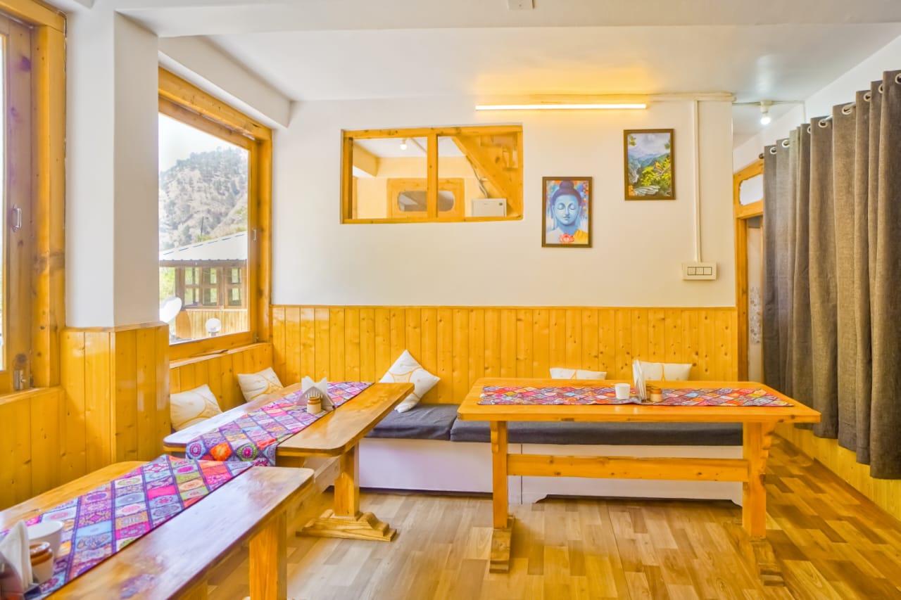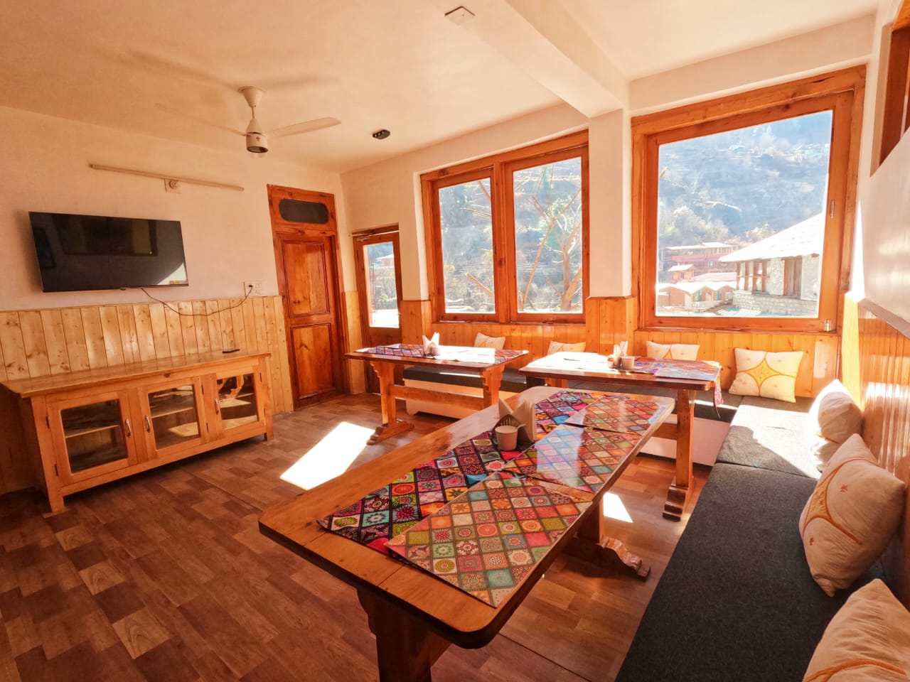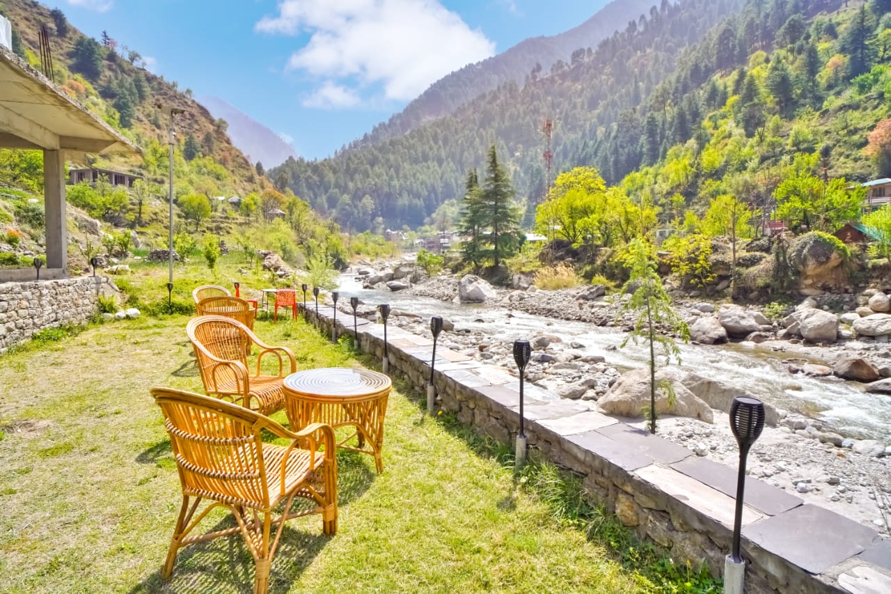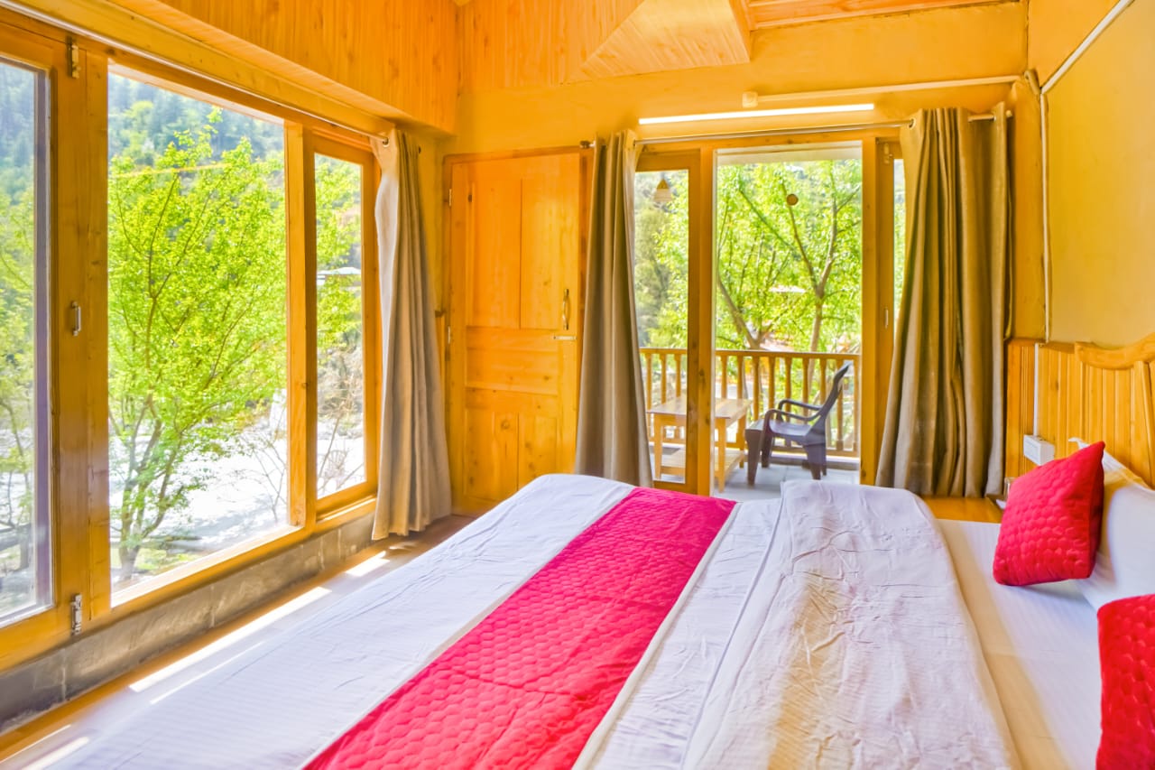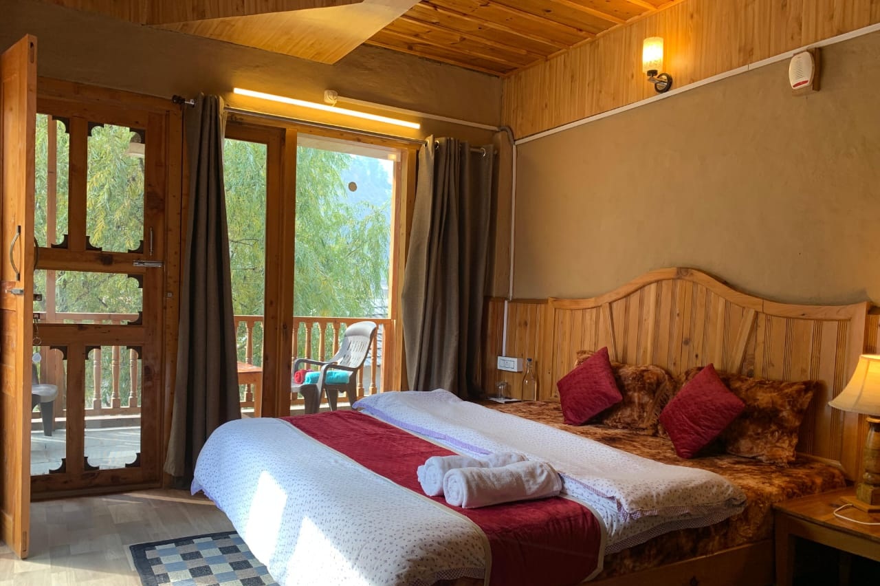 Beautiful Deluxe Room on the Ground floor, easy access to Dining Area, Fire Area and Tirthan River. There's no balcony attached to the room. But there is enough space outside to sit and relax in the garden, situated next to the river. This room is an excellent budget-friendly option, providing comfort and convenience within our scenic premises.